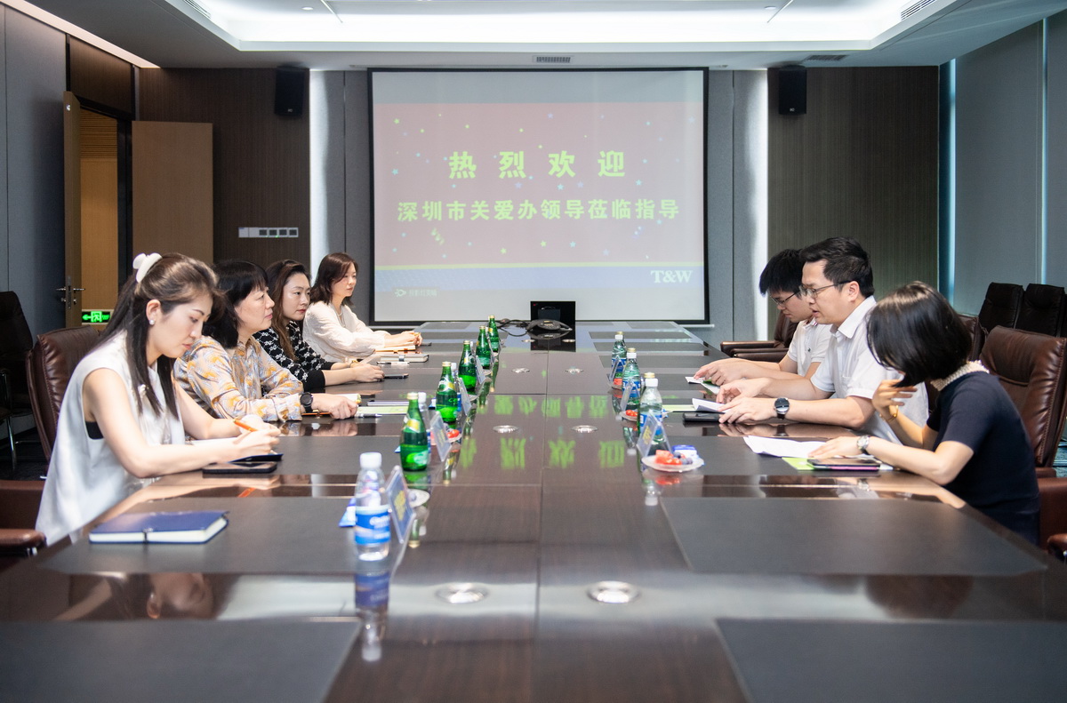 5月14日下午,深圳市关爱办专职副主任陈建中一行莅临公司,就我司参评深圳市十大爱心企业工作展开调研和指导。公司副总经理、深圳市同维爱心公益基金会理事长龙晓晶等接待了来访领导。
