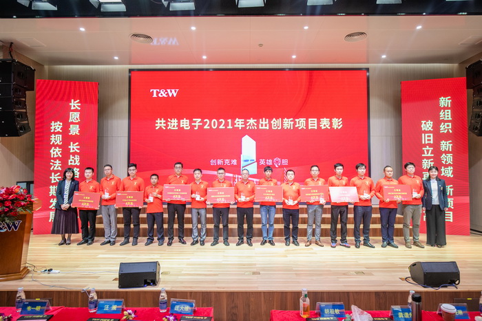下午,大会继续召开。公司在大会上隆重表彰30个杰出创新项目,公司总经理胡祖敏、副总经理汪澜、副总经理龚谱升、网通事业部执行副总经理魏洪海分别简要汇报了公司重点创新项目。同时胡总向越南共进抗疫英雄团队颁发了总经理奖。奖金为10万元。2021年越南新冠肺炎疫情全面爆发,越南共进全体员工守职尽责,排除万难,赶时间,抢产能,尽一切努力组织生产,保交付。为表彰先进人物,弘扬拼搏精神,经总经理决定,颁发这个总经理特别奖。